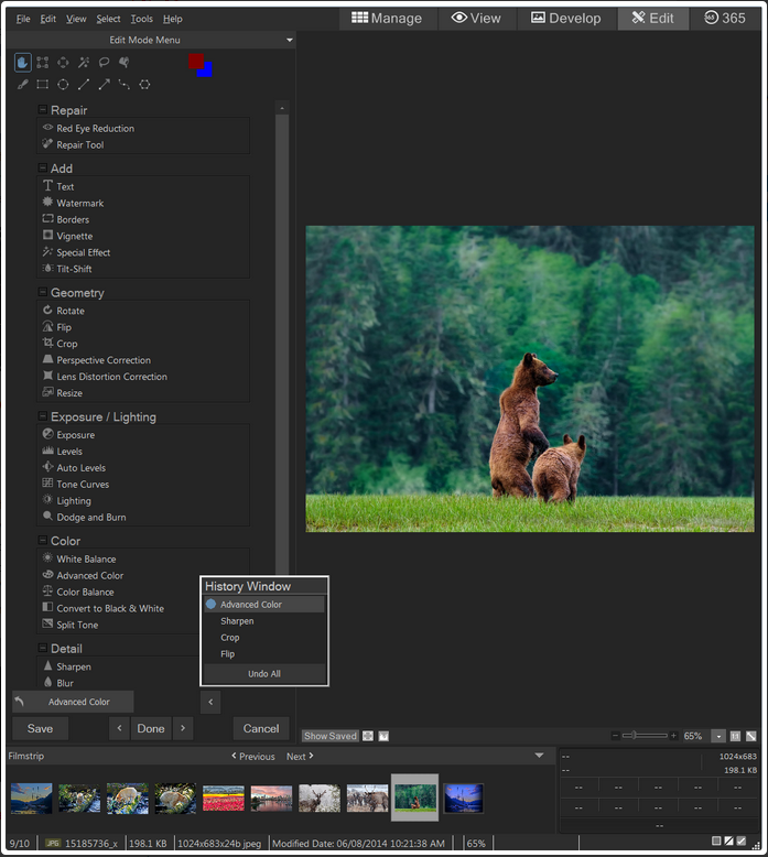 Edit modundaki History Penceresini kullanarak yaptığınız düzeltmelerin geçmişini görüntüleyin, her kadar işlem yapmış olursanız olun, belirli bir aşamaya geri dönün. Yaptığınız tüm işlemleri bir seferde geri alın.