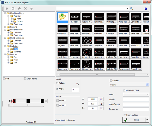 HVAC - Industrial systems kütüphanesinde aşağıdaki sembol kategorileri bulunur: