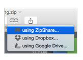 WinZip’in dosya paylaşım hizmeti olan ZipShare'e doğrudan erişin. WinZip Mac 4 ile ZipShare hesabınıza doğrudan erişin. Bulut hesaplarınıza erişin ve sıkıştırılmış dosyalarınızı doğrudan eposta ile paylaşın. Herhangi bir dosyayı zipleyin ve mesajla Facebook, Twitter ve LinkedIn'de paylaşın. ZipShare kullanarak boyutu 50MB'a kadar olan dosyaları ücretsiz olarak gönderin, ZipShare Pro sürümüne geçerek boyutu 2GB'a kadar olan dosyaları gönderin.