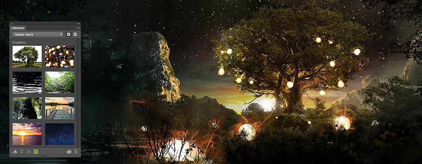 Yeni Adobe Stock pazarı, telifsiz görüntü ve vektörleri Photoshop CC'nin içinden bulmanızı, lisanslamanızı ve yönetmenizi sağlıyor. 40 milyon varlık arasından seçiminizi yapın, seçiminizi Creative Cloud Libraries'e kaydedin ve projenize sürükleyerek kullanın.