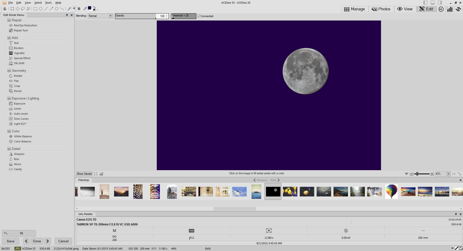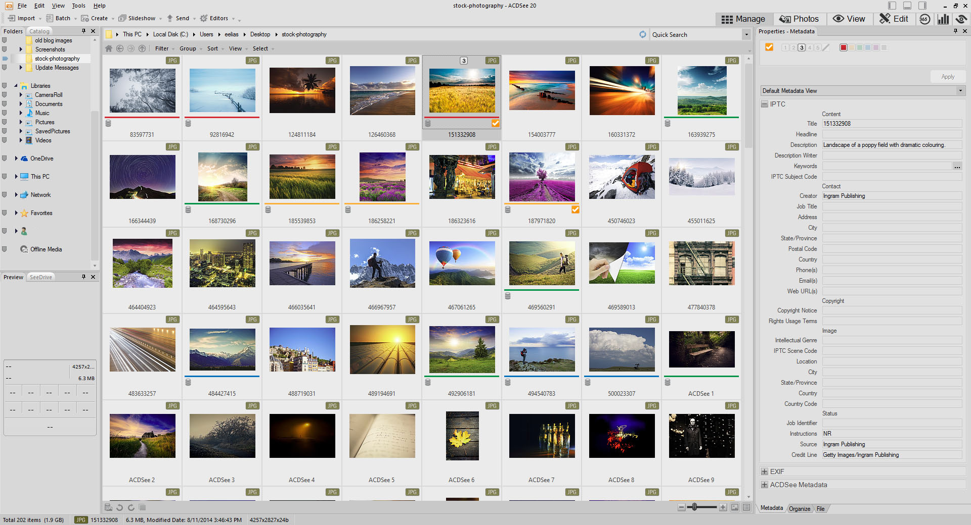 Gelişmiş performans ve kararlılık, işleyişinize uyacak şekilde arttırılan arayüz özelleştirmesi, çok daha gelişmiş parazit azaltma ve diğerleriyle ACDSee 20, üretken fotoğrafçılık işakışınız için ihtiyaç duyacağınız tüm temel öğeleri sağlıyor. İstatistikleri hemen belirlemeniz, aynı zamanda kütüphanenizde değer verilmemiş değerleri kolaylıkla bulmanızı sağlayan ayarlar için hazırlanmış yeni modla ACDSee 20, büyüyen fotoğraf koleksiyonunuz için mükemmel bir çözüm.