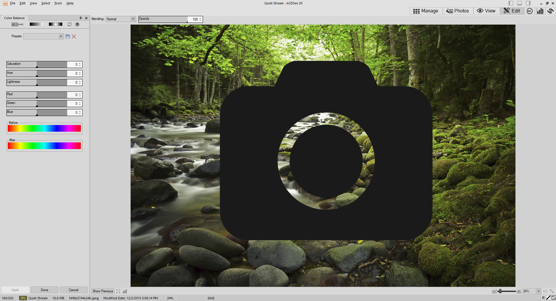 Belirli bir merkez noktadan dışa doğru aşamalı veya fotoğrafınız üzerinde incelikli işlem için dairesel veya çizgisel gradyan uygulayın.