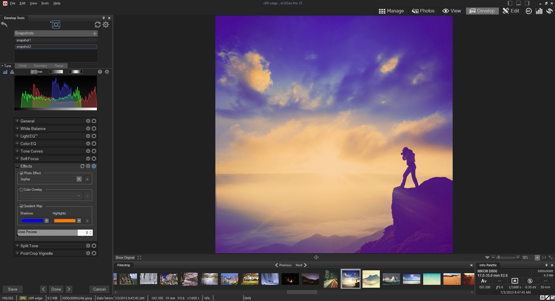 Pikselleri kendiniz ayarlamak yerine, ayarlamalar için talimatlar oluşturmanıza olanak tanıyan Develop modunda, özellikle bir RAW dönüştürme ortamı olarak tasarlanmış çok çeşitli parametrik ayarlamalar gerçekleştirin. RAW, JPEG ve diğer resim formatlarıyla çalışın.