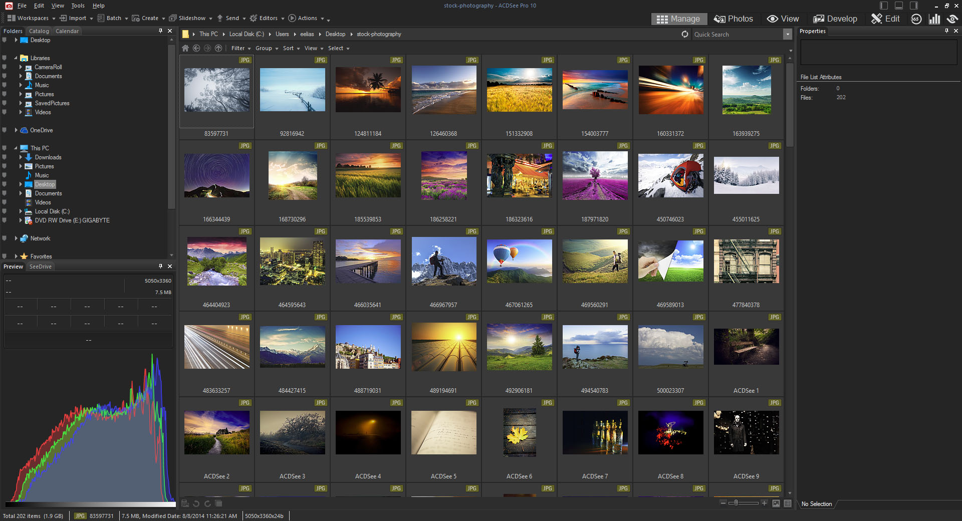 ACDSee Pro’nun Dashboard penceresinin avantajlarından faydalanın ve dosyalarınız, veritabanı ve fotooğraf makinesi kullanımı gibi istatistikleri anında görüntüleyin.
