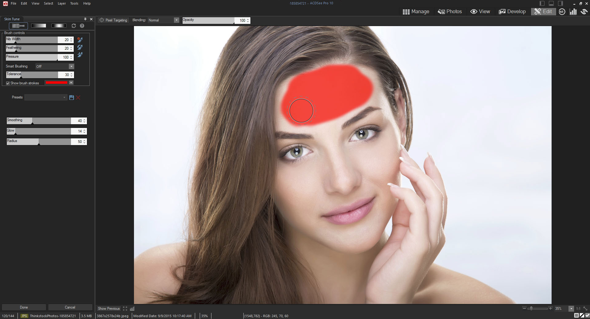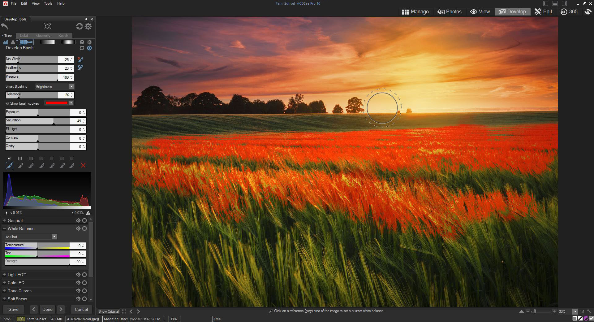 Artık kenarları fark ediyor! Bu çalışkan fırça, belirli renk ve parlaklık düzeyleri hedefleniyorsa, Develop modunda pozlama, doygunluk, aydınlatma, kontrast, keskinlik ve netlik ayarlarında ve Edit modunda birçok araçta fırçalama yapmanızı sağlıyor.