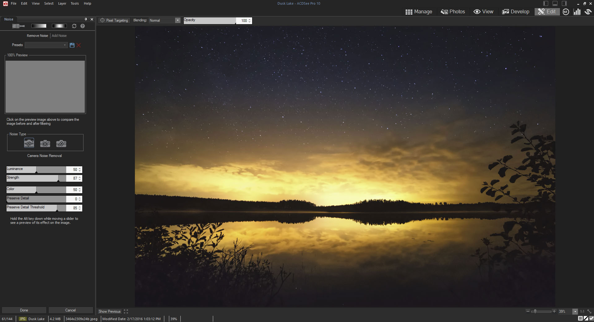 Parazit azaltma konsundaki en yeni geliştirmeler, gren parazitli bozulmaları temizlerken detayları korumayı mümkün kılıyor. Hatta korunacak detay düzeyini belirtebilirsiniz.