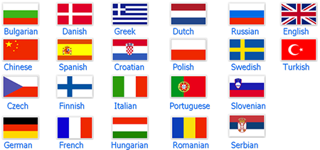 Unicode temelli kullanıcı arayüzü, İngilizce, Türkçe, Bulgarca, Basitleştirilmiş Çince, Hırvatça, Çekçe, Danimarkaca, Flemenkçe, Fince, Fransızca, Almanca, Yunanca, Macarca, İtalyanca, Lehçe, Portekizce, Romanca, Rusça, Sırpça, Slovenyaca, İspanyolca ve İsveççe dahil olmak üzere 22 dili destekliyor.