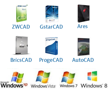 Tüm dünyada onbinlerce kullanıcı CADprofi paketini tercih etti. Bu yüzden, yazılımımızın her sürümünde tüm CAD programlarıyla tam uyumlu olmaya özen gösteriyoruz. Uygulamalarımız, herhangi bir seçili yazılım ortamıyla (AutoCAD, ARES Commander, BricsCAD GstarCAD, progeCAD, ZWCAD, IntelliCAD ve dahası) uyumlu olacak şekilde kendini otomatik olarak yapılandırır.
