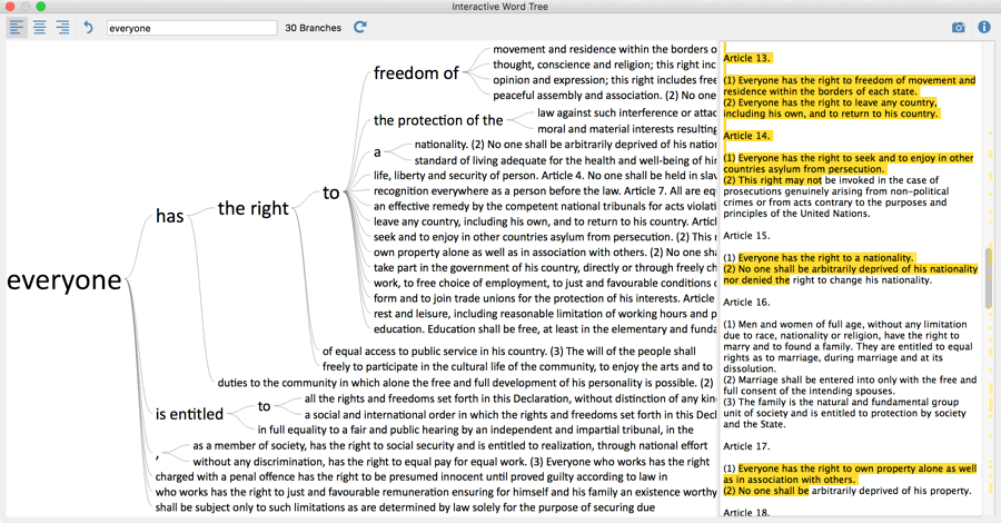 Örneğin, İnteraktif WordTree'imizi alın: Frekansların ayrıntılı bir gösterimi dahil olmak üzere, seçtiğiniz herhangi bir kelimeden çıkan veya yönlendiren tüm kombinasyonları görselleştirir.
